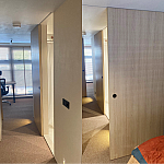 MK10 Lite is a sliding door panel an HPL top layer, especially suitable for the suspension kit Lite Retrac by KLEIN® Europe. It is also possible to choose a flat top of the sliding door to make it suitable for a suspension bracket on top of the door (suspension type Superior).
